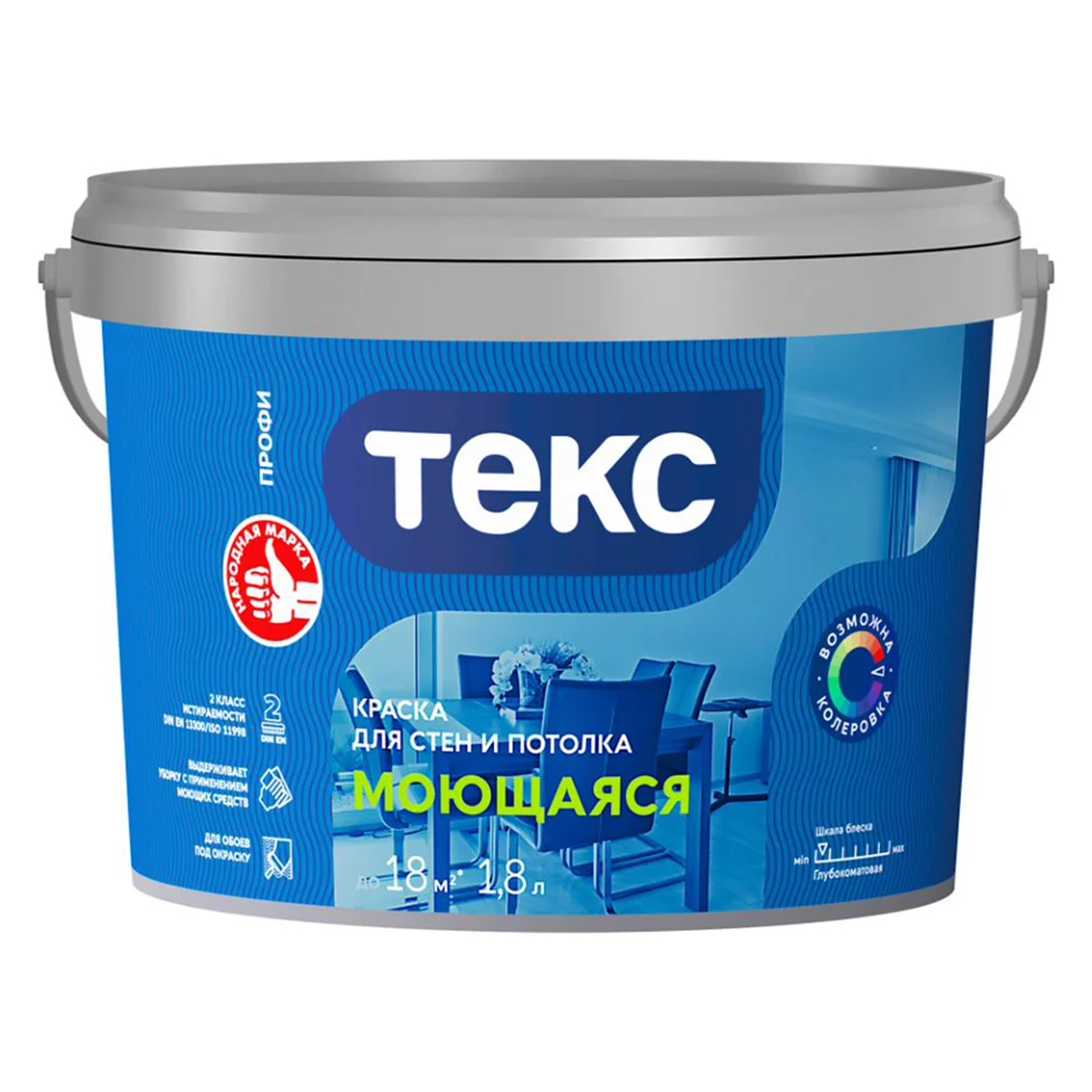 Краска водно-дисперсионная для высококачественной окраски стен и потолков внутри сухих помещений и помещений с повышенной влажностью. Образует влагостойкое покрытие, устойчивое к легкому мытью мягкой поролоновой губкой с применением бытовых неабразивных моющих средств. Применяется по бетонным, оштукатуренным, гипсокартонным, кирпичным, дощатым деревянным поверхностям, ДСП и ДВП, а также для обоев под окраску. Предназначена для кухонь, ванных, коридоров и других сухих и влажных помещений. Рекомендована для окраски в детских дошкольных, учебных, лечебнопрофилактических учреждениях и других помещениях с предусмотренным режимом влажной дезинфекции.Для колеровки базы А и D в пастельные и насыщенные оттенки воспользуйтесь компьютерной колеровкой.Базу D использовать только в колерованном виде! Для лучшей укрывистости при окрашивании в яркие цвета на основе базы D рекомендуется предварительно нанести слой краски базы А, заколерованной в похожий оттенок. Во избежание различий в оттенке используйте краску одной партии. Для проверки цвета сделайте пробную выкраску на окрашиваемой поверхности.Технические характеристики :Срок годности (с даты изготовления): 24 месТип: акриловая (водно-дисперсионная)Вид тары: ведроОбъем: 1.8 лВес нетто: 2.8 кгПалитра: прозрачныйВозможность колеровки: даБез запаха: даТип обоев: под покраскуМарка: нетСерия: ПрофиЦвет: прозрачныйБазис: база 3 (B3/C/BC/KC/D/LC/MRC)Степень блеска: глубокоматовыйПлотность: 1.55 кг/лРасход: 0.14-0.25 л/м²Разбавитель: водаОснования: ЦСП/ФСП/ОСП/бетон/кирпич/минеральные основанияТемпература основания: 5 °СMin температура эксплуатации : -50 °СMax температура эксплуатации : 60 °ССпособ нанесения: кисть/валик/краскораспылительВремя полного высыхания: 1.5 чМоющаяся: даВлагостойкость: даФактурная: нетБыстросохнущая: даИзносостойкая: даДля пластика: нетДля кирпича: даДля бетона: даДля металла: нетДля дерева: даДля камня: даДля помещений с повышенной влажностью: нетДля медицинских учреждений: даДля детских учреждений: даПреимущества :Краска удобно наносится, образует глубокоматовое паропроницаемое (дышащее) покрытие, выдерживающее влажную уборку -Колеруется в пастельные и насыщенные тона Моется влажной губкой Рекомендована для детских и лечебных учрежденийДля колеровки воспользуйтесь компьютерной колеровкой Текс или заколеруйте самостоятельно колер красками Профи Текс