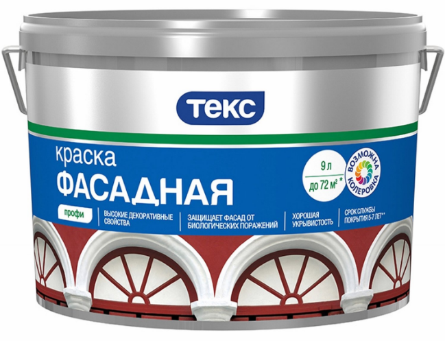 Имеет высокие декоративные свойства. Защищает фасад от биологических поражений. Обладает хорошей укрывистостью. Срок службы покрытия 5-7 лет. Краска является основой. Для колеровки в пастельные и насыщенные цвета по каталогу ТЕКС воспользуйтесь колеровочным сервисом ТЕКС. Основа А может использоваться в качестве белой краски. Предназначена для окраски фасадов зданий и сооружений по минеральным поверхностям (бетонные основы, цементные штукатурки, не глянцевая строительная керамика), ранее окрашенным водно - дисперсионными или перхлорвиниловыми красками.