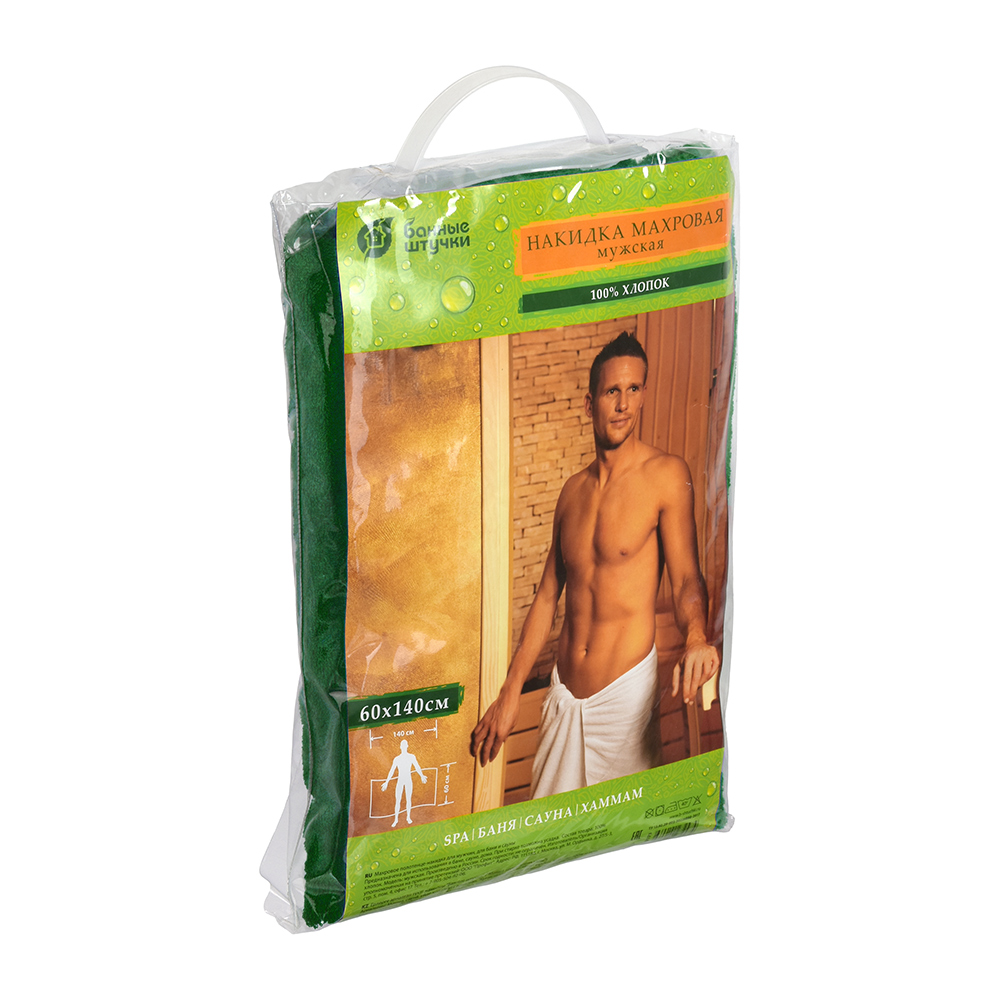 Предназначена для комфортного пребывания в бане или сауне. Ее также можно использовать в качестве подстилки на лавку или как полотенце. Махровая ткань быстро впитывает влагу, обеспечивая комфорт во время использования. Конструктивные особенности - застежка на пуговицах.ХарактеристикиБренд: Банные ШтучкиМатериал: хлопокЦвет: зеленый Тип: для мужчин