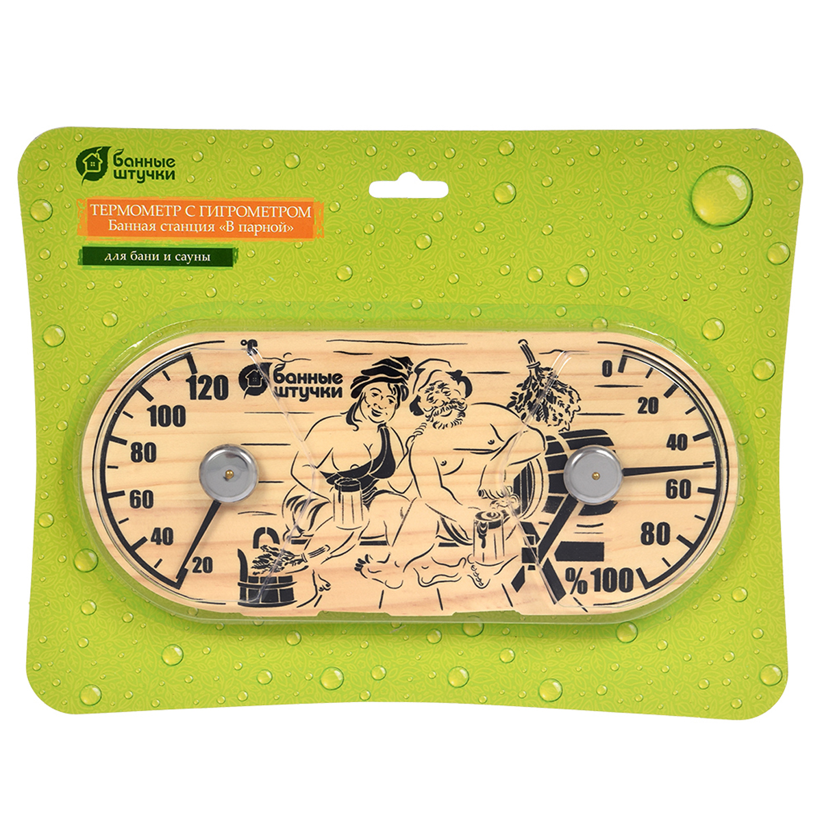 Банная станция Банные штучки объединяет термометр и гигрометр в одном изделии, позволяя точно контролировать температуру и влажность в парной. Корпус выполнен из качественного дерева, что придает аксессуару классический и уютный вид, гармонично вписывающийся в интерьер бани или сауны. Прибор поможет создать оптимальные условия для комфортного и безопасного пребывания в парной, а четкая и удобная шкала обеспечивает легкое считывание показаний.