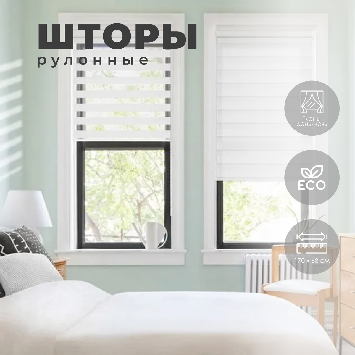 Рулонная штора "День-Ночь" белый – популярный лот нашей коллекции. Конструкция позволяет регулировать уровень освещенности в нескольких режимах за счет двух полотен разной плотности. Материал "ткань день-ночь" – с высокой стойкостью к износу. Он фиксируется с помощью рабочего вала и привода в необходимом положении (полная или легкая затемненность, полноценное освещение). Такое решение подходит для любых помещений с окнами и хорошо вписывается в современный интерьер. Цвет – белый не выгорает на солнце, остается таким же ярким, как в день покупки. Конструкция компактна и легко монтируется.Характеристики:Размер: 68 х 170 смШирина: 68Высота: 170Комплектация: Штора "День-ночь" с трубой; Ограничитель; Цепочный механизм с заглушкой; Заглушка-фиксатор; Фиксирующая профильная планка; Держатели; Площадка с двусторонним скотчем; Утяжелитель; Навесной кронштейн; Зажим; Шурупы; Фиксатор для цепочки.Материал: Ткань день-ночьЦвет: БелыйУпаковка: БлистерМатериал: День-ночь