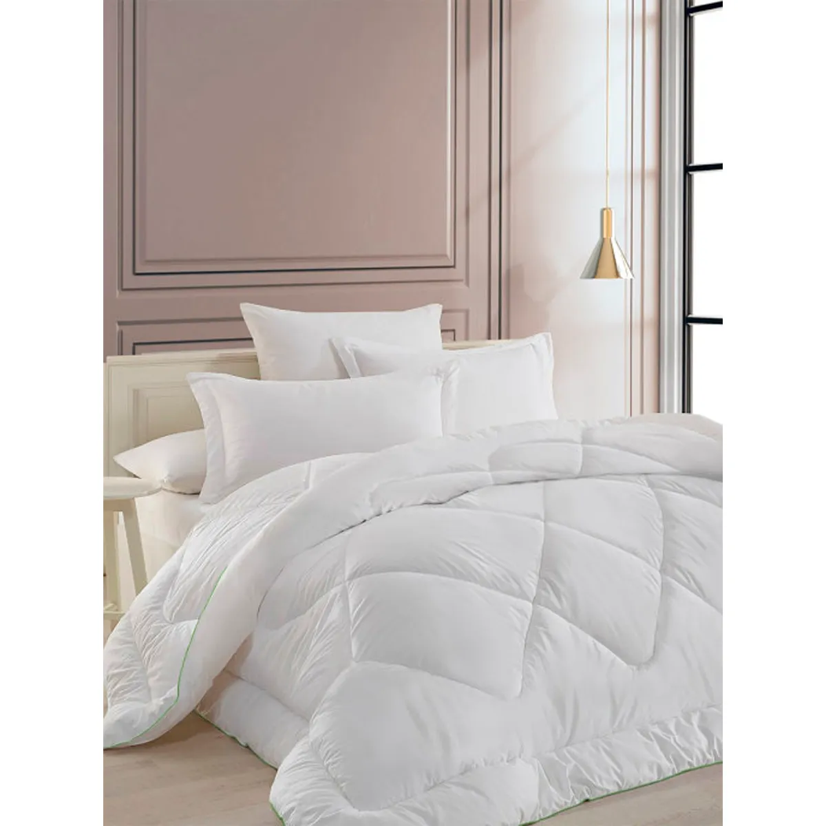 Одеяла Бамбук выполнены в ткани из 100% хлопка –перкаль, цвет оптически белый, снежно-зеленым кантом, что отражает премиальность и подчеркивает внутреннюю чистотуизделия. Благодаря высококачественному бамбуковому волокну в составе наполнителя, одеяла обладаютследующими свойствами :Антибактериальные и антисептические свойства, что препятствует размножению бактерий и микроорганизмов. Именно поэтому изделия являются гипоаллергеннымиВысокая гигроскопичность. Структура бамбукового волокна позволяет хорошо поглощать и испарять влагу, благодаря чему осуществляется эффективный теплообмен и поддерживается оптимальный микроклимат во время ночного отдыхаРелакс-эффект, помогают снять усталость и стрессХарактеристики:Наполнитель: силиконизированное волокно; бамбукМатериал чехла: перкаль; хлопок 100%