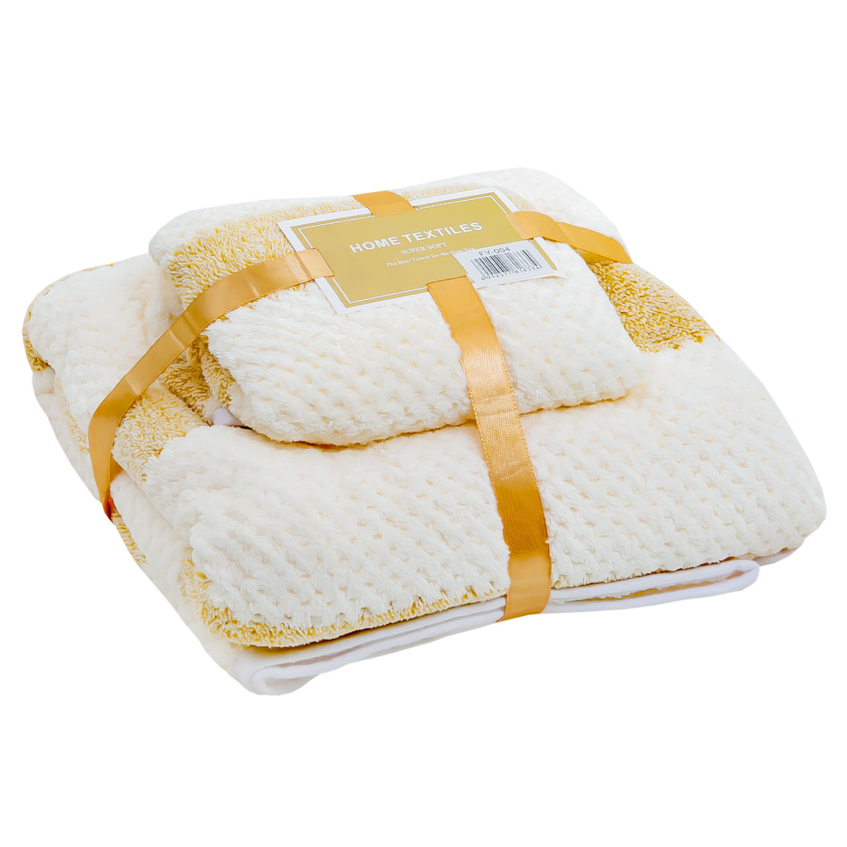 Набор полотенец – идеальное решение для вашего комфорта! Набор включает два полотенца разных размеров, идеально подходящих для любого случая. Маленькое полотенце станет незаменимым помощником для лица и рук, а большое подойдет для ванных процедур. Полотенца легко стираются и быстро сохнут, сохраняя свою форму и цвет даже после многоразовых стирок. Полотенца выполнены из текстиля. В комплекте: полотенца – 2 шт. Размер компактного полотенца (г/ш/в): 25 х 75 см Размер большого полотенца (г/ш/в): 70 х 140 см Материал: текстильТип упаковки: сетка