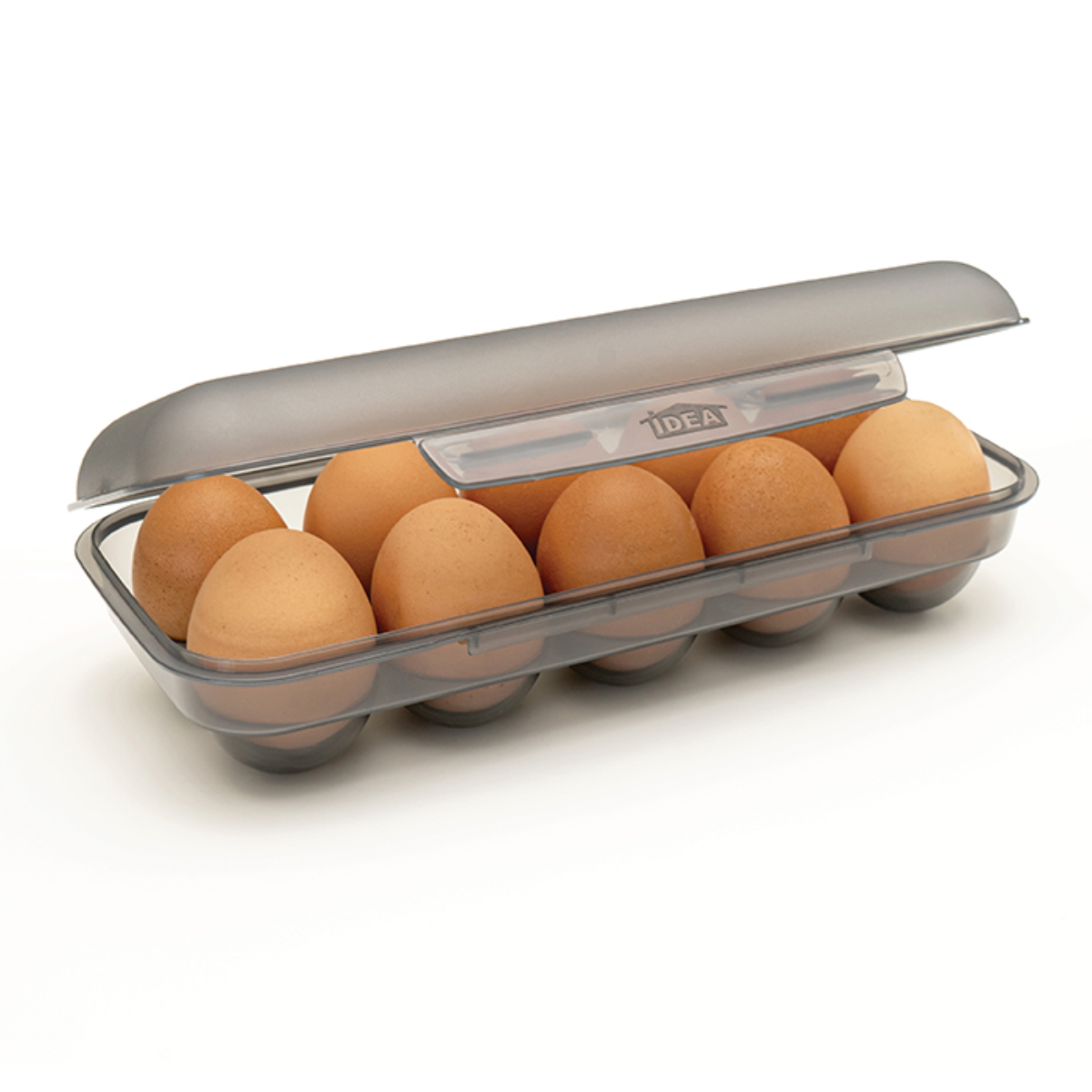 Контейнер для хранения яиц на десять штук прекрасно подойдёт для организации пространства в Вашем холодильнике, переноски и сохранности яиц. Надёжный защёлкивающийся замок предотвратит случайное раскрытие контейнера. Размер предусматривает его хранение на дверце холодильника. Также несколько контейнеров можно ставить друг на друга, а размер контейнера предусматривает его хранение на дверце холодильника. Сделан из полипропилена, на корпусе фирменный логотип.Характеристики:Материал: полипропиленГабариты: 265x115x70 мм