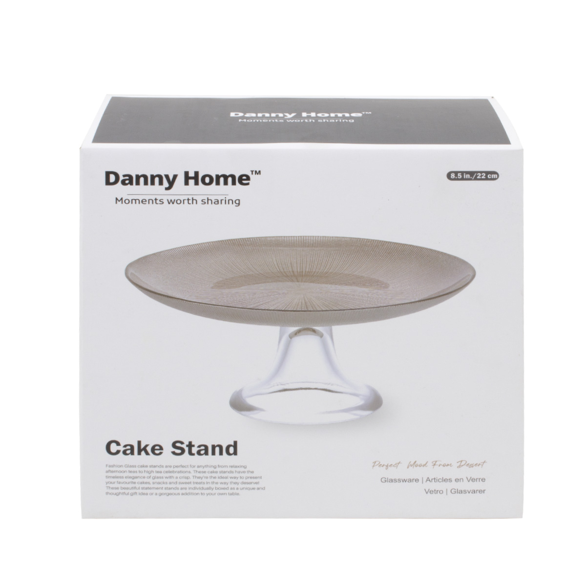 Прозрачное стекло позволяет красиво демонстрировать десерты, торты или закуски, а компактный размер делает её удобной для повседневного использования и праздничных мероприятий.