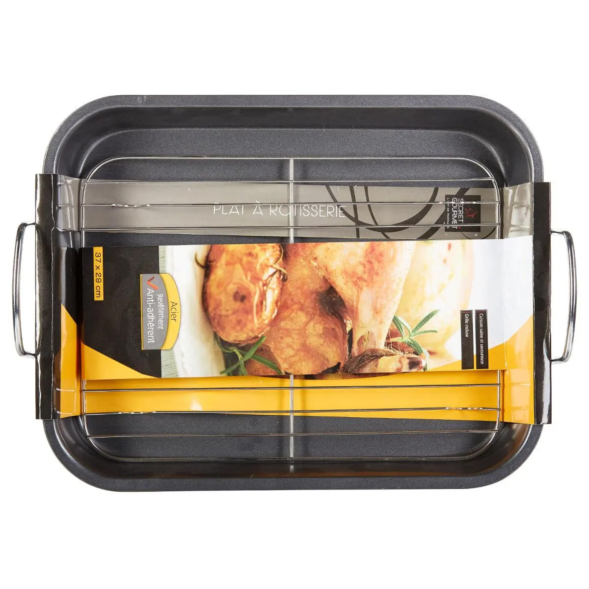 Противень для запекания станет настоящей находкой для поклонников домашней выпечки. Ароматный пирог с шоколадом или ягодами, с мясной начинкой или любой другой – что может быть лучше? Особенно, если он приготовлен в чудесной форме, которая точно не даст ему пригореть. Такой пирог, поданный к чаю или кофе, обязательно порадует ваших гостей или домочадцев.Характеристики :Размер с учетом ручек: 39 х 29 х 8,2 смРазмер без ручек: 39 х 29 х 5 см