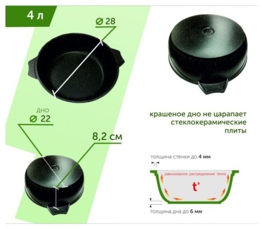 – Подходит для газовых, электрических и стеклокерамических плит.