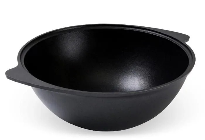 Казан изготовлен из литого алюминия с антипригарным покрытием повышенной прочности, безопасным для здоровья (без PFOA). Сферическая форма и толстые стенки обеспечивают равномерное распределение тепла, продукты не пригорают и сохраняют натуральный вкус. Можно использовать минимальное количество масла. Казан совместим с электрическими, газовыми и стеклокерамическими плитами, кроме индукционных.
