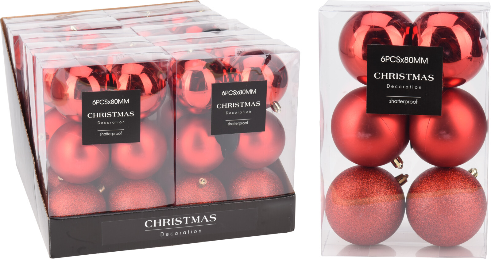 Набор елочных шаров 6 шт 8 см красный AVS100820 К