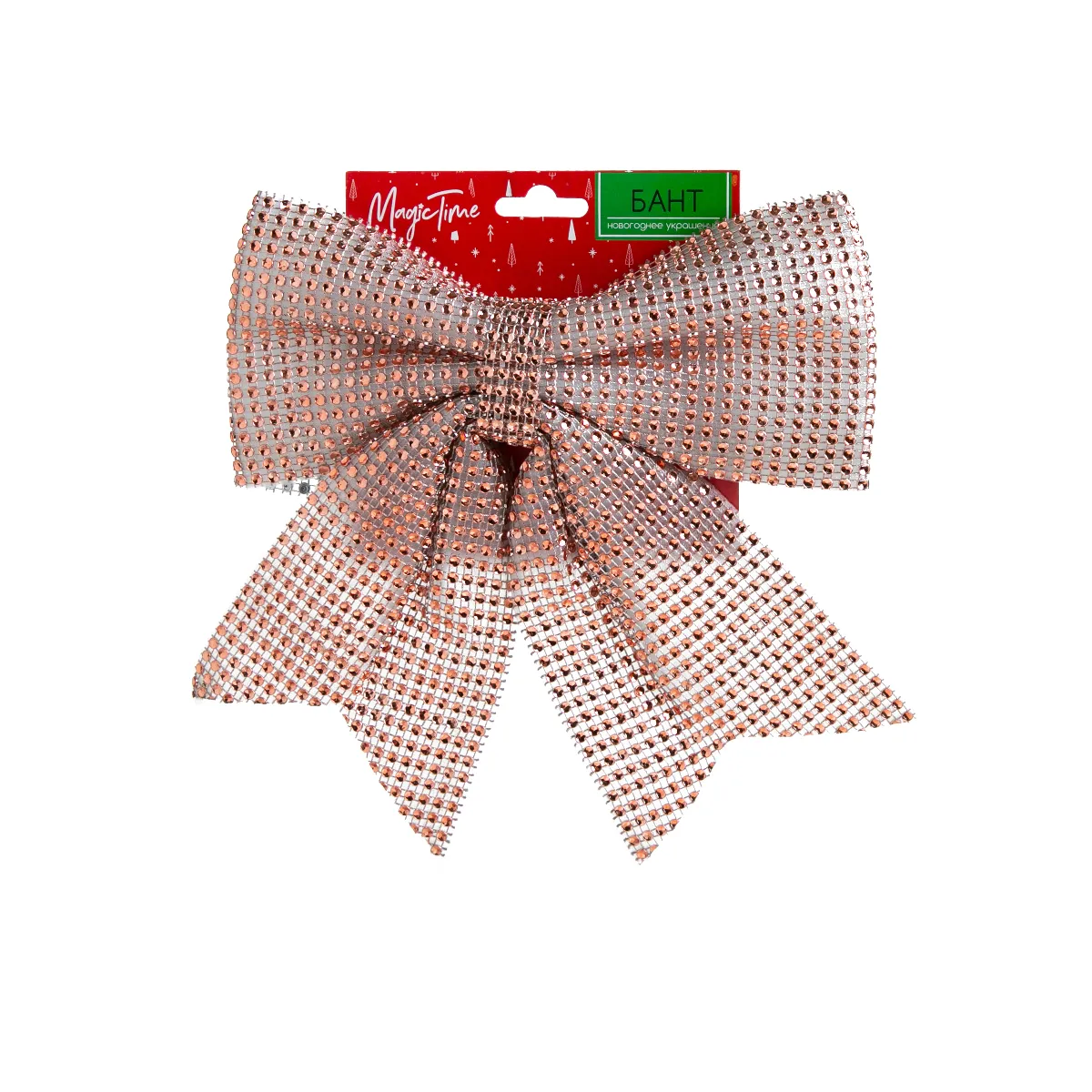 Новогодние украшения в оригинальной форме бантов расставит яркие акценты в наряде вашей ели. Яркие бантики будут придавать атмосфере праздника и радости. Размер украшения 22 см. Украшение крепится с помощью проволоки. Таким бантиком можно украшать как и вашу ель, так и весь интерьер.Характеристики:Ширина: 3 смДлина: 25 смВысота: 22 смОсновной материал: пластик