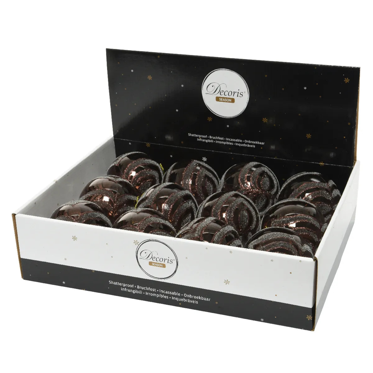 —Шар елочный 8 см Decoris коричневый с сахарной отделкой 029305 Kmg