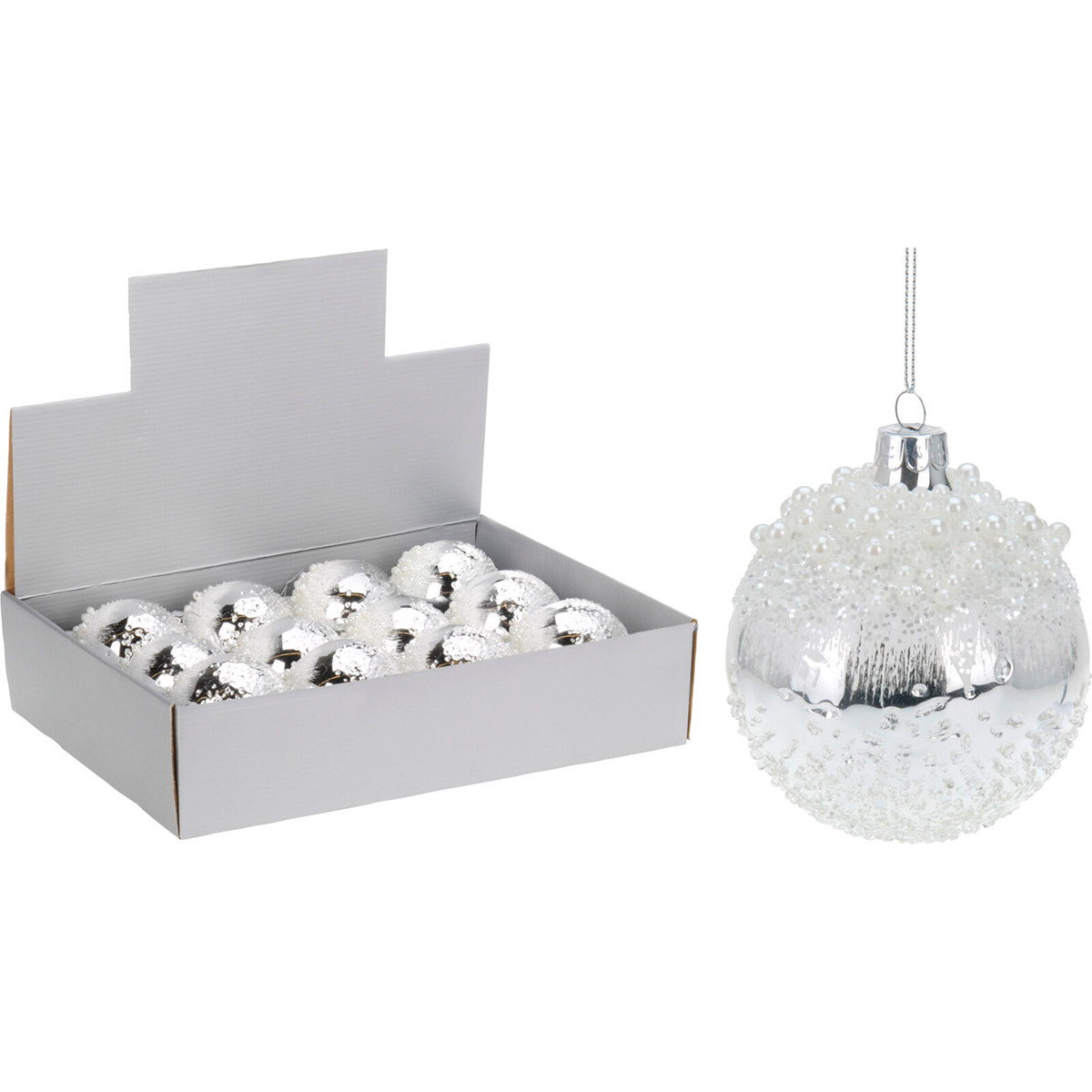 С приходом зимы в воздухе начинает витать волшебный аромат праздника. В преддверии зимних торжеств, все мы ждем момента, когда сможем достать новогодние украшения и приступить к праздничному оформлению дома. Чтобы украсить праздничную елку оригинально и со вкусом, потребуется немало сил и фантазии, но это того стоит! Красивые и с любовью выбранные новогодние игрушки, могут создать атмосферу настоящей сказки. Новый год – время волшебства, чудес, подарков и долгожданных встреч. В этот особенный день так хочется окружить себя и близких атмосферой тепла и уюта!Елочные игрушки Koopman в ассортименте для украшения новогодней и рождественской ели, декорирования квартир, домов, магазинов, офисов, школьных и дошкольных учреждений. Елочная игрушка Шар диаметром 8 см выполнена из стекла в серебристом цвете с блестками. Необычный дизайн создает объемный эффект. Игрушка выглядит интересно, притягивает взгляды, подойдет для декора помещений и создания различных композиций. Небольшой вес позволяет размещать его как на искусственных, так и натуральных елях.Характеристики:Цвет: СереброМатериал: СтеклоБренд: KoopmanРазмер: 8смСтрана производитель: Китай