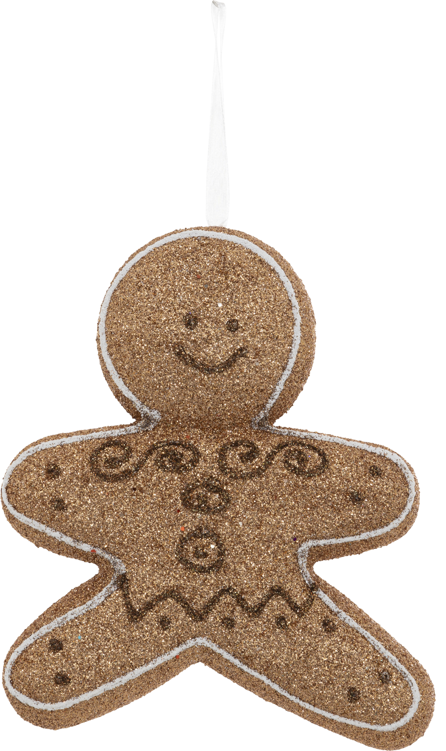 Фигурка выполнена с детализацией традиционного пряничного дизайна — с румяными щечками, украшениями из «глазури» и яркой одеждой. Изготовлена из прочного материала, имеет удобную петельку для подвешивания, что позволяет легко разместить украшение на елке или в праздничной композиции.